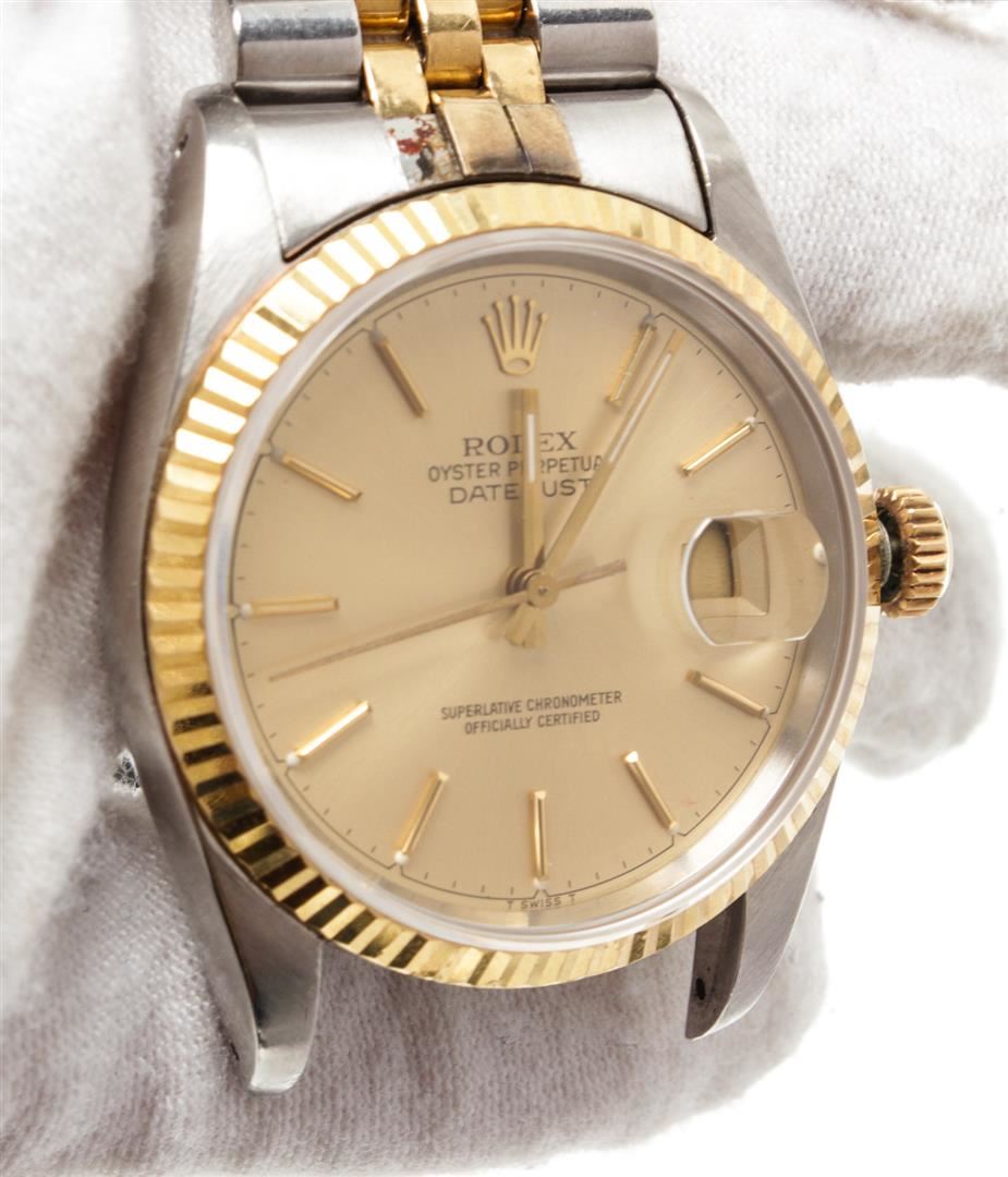 One Rolex 2 Tone Stainless Steel Yellow Gold Datejust Watch Ref 16233.