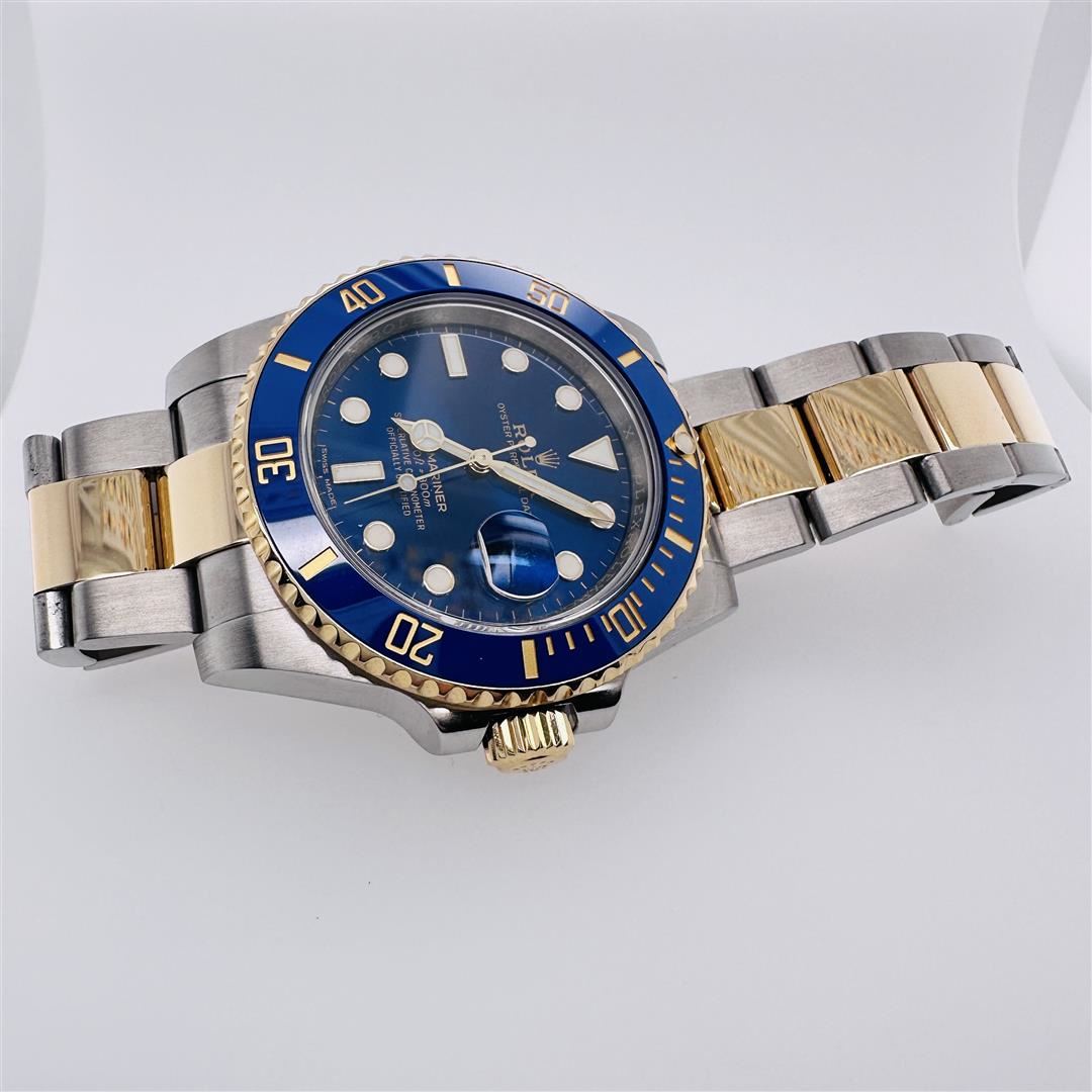 One Rolex Blue Face Two Tone Ceramic Submariner 40mm 2017 Includes factory Papers/documentation. This is a pre-owned watch in excellent condition. The watch comes with the original factory documentation. This watch is 2017. Runs and looks like a new watch. The photos in this listing is of the actual watch being sold and accurately reflect how this watch looks in person.