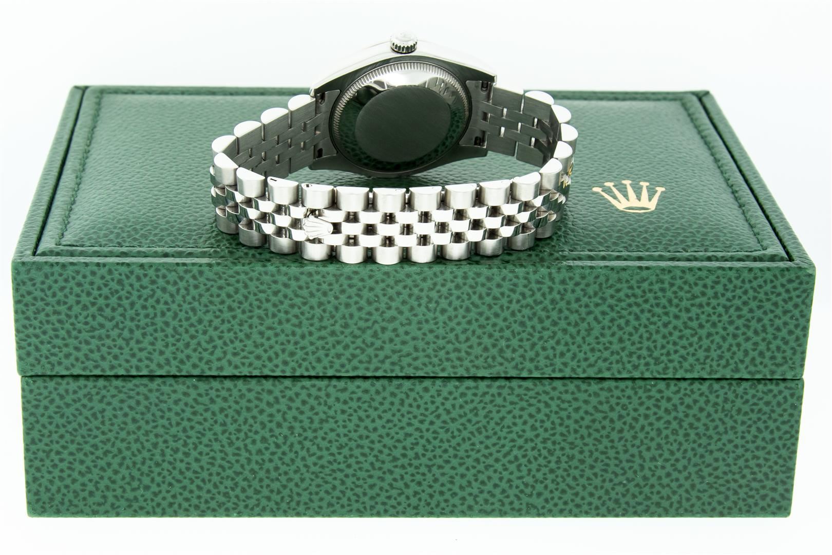 One Women's Pre Owned Midsize 31MM Stainless Steel Rolex Datejust Polished, Serviced & Electronically Tested, Rolex Stainless Steel Case Case: 31mm, Rolex Stainless Steel Crown, Rolex Bezel: 18K White Gold Fluted Bezel, Crystal: Sapphire With Cyclops Lens. Hands: Lumi Hands. Rolex Movement: Automatic Winding Movement 2235. Rolex Dial: Blue Index With Square Roman Track. Date Window: 3 O'Clock Position Date Display, Quickset, Model: Midsize Datejust. Condition: G-6 Extra Fine. Rolex Bracelet: Stainless Steel Jubilee Band. Bright Polish. 6.0 Inch Length, Adjustable. Hidden Clasp, With Rolex Logo. This Watch Has Been Serviced Time Tested And Is In Excellent Condition It Is Free Of All Scratches And Dents. This Watch Comes With A Rolex Box.