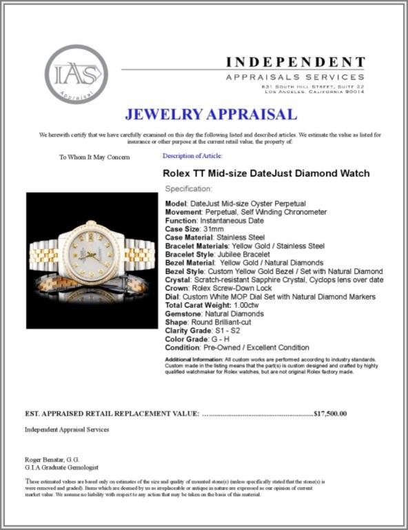 Regarding Appraised Jewelry and Loose Stones - Auctionfarm sends them out to a third party for Retail Replacement Value Appraisals, which are the most common. These types of evaluations are written for insurance needs. This would be the cost to replace the jewelry with an item of equal quality and kind, considered to be the current market price or the replacement value. This type of appraisal is done to protect you in the event of damage or loss of a valuable item. Our appraisals are conducted by independent 3rd Party appraisal firms that utilizes Certified GIA Gemologist. Appraisals should be used for verification of gemstone and/or metal weight, size, and grade only, not actual value. Appraisal value should be considered for insurance purposes only, not actual value, as price varies greatly from retail locations thru out the world. Items should not be purchased with the expectation to resell for appraisal price, or for profit.