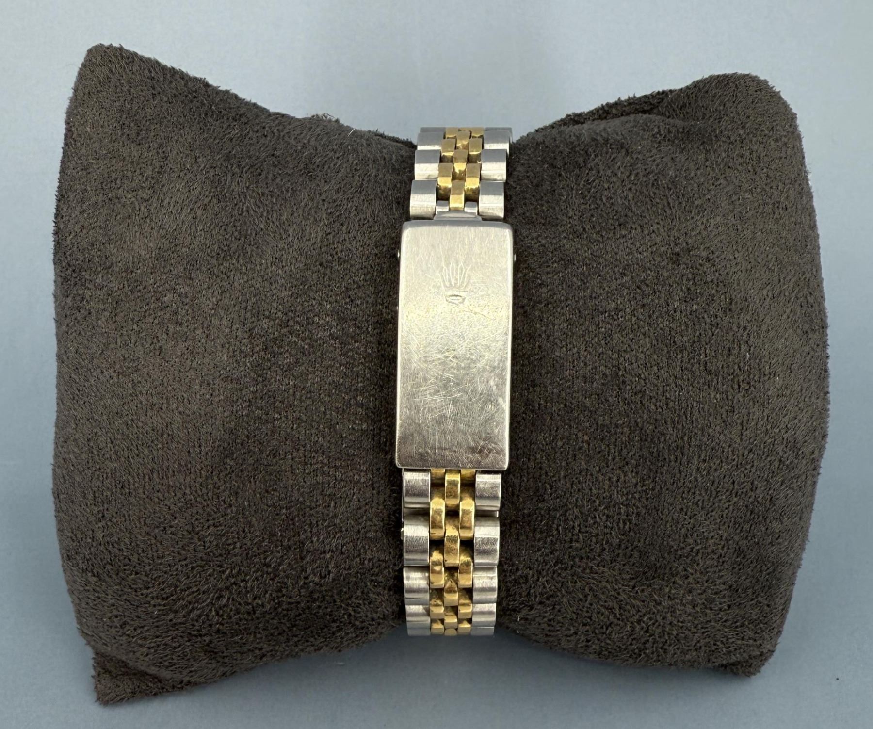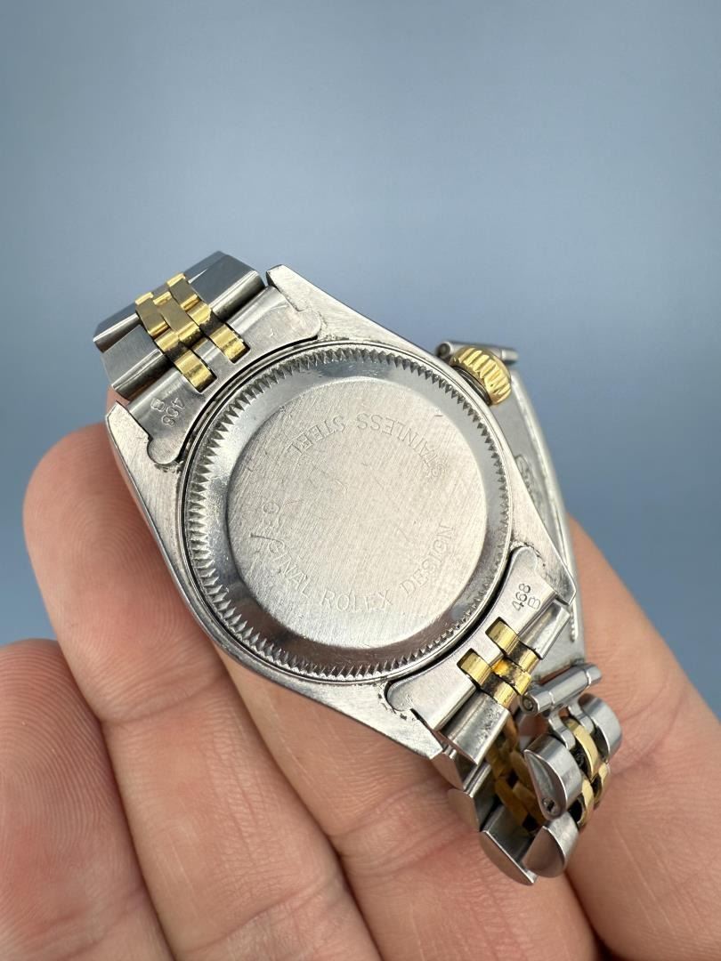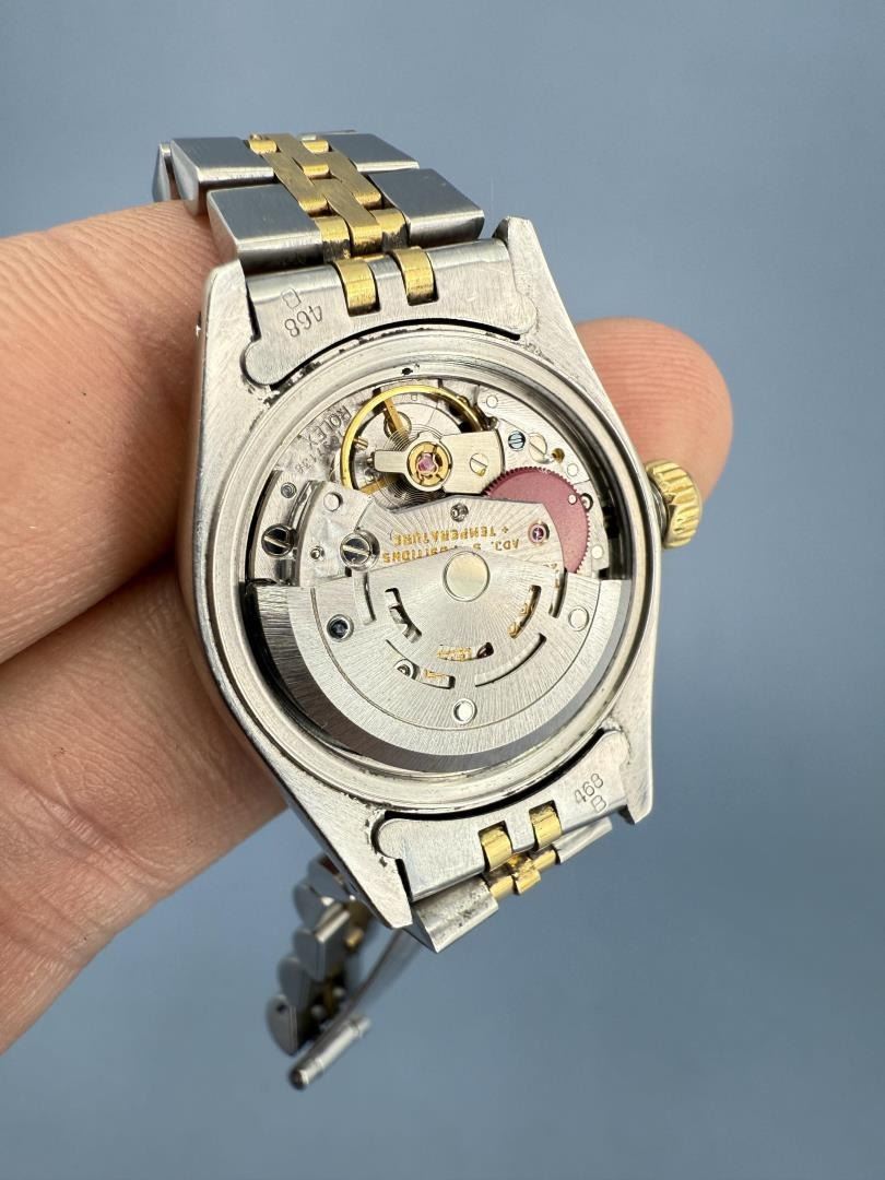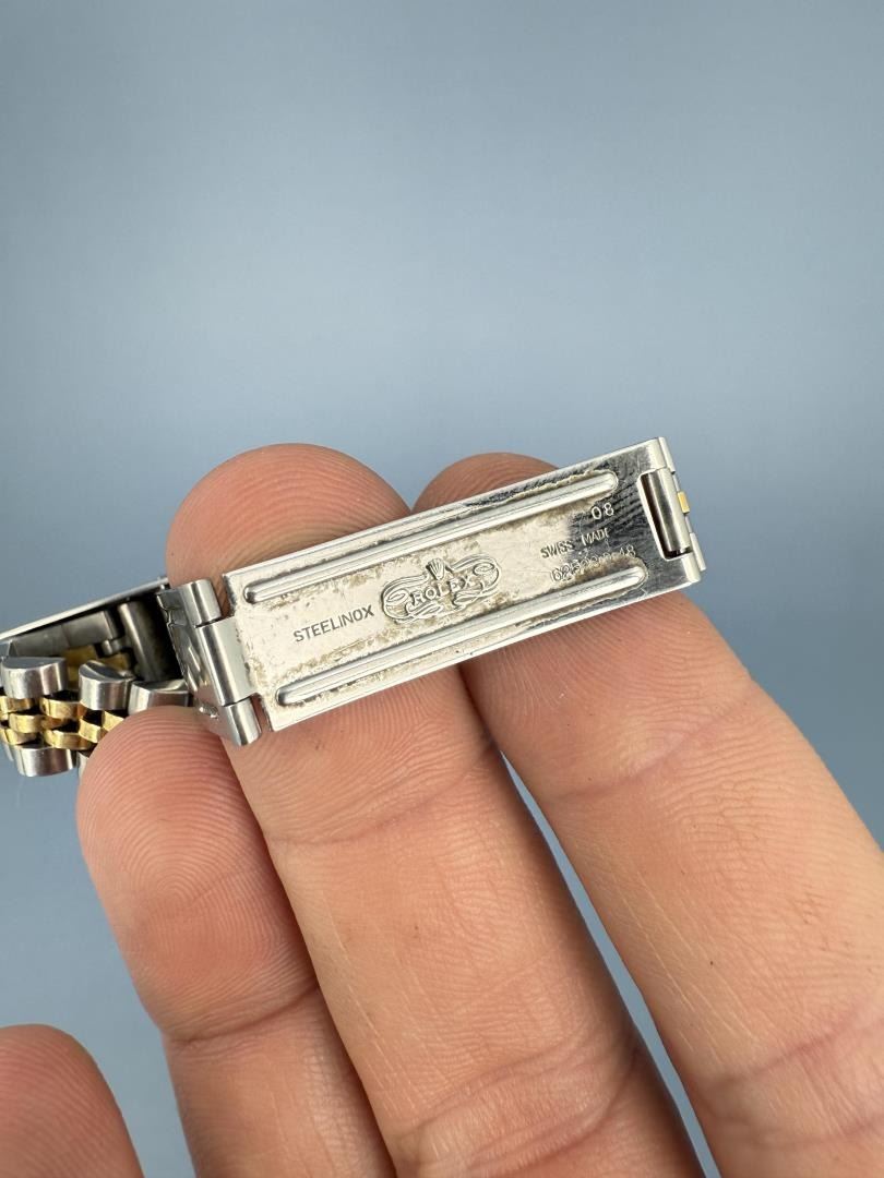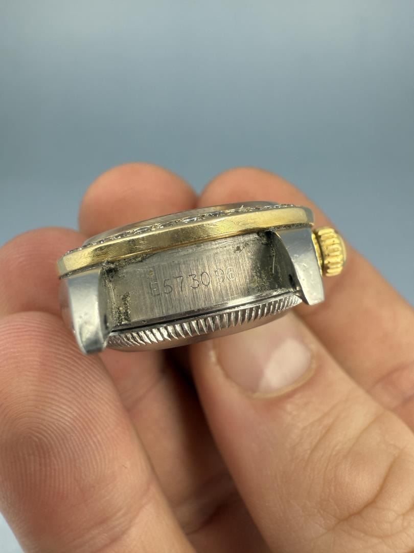 Ladies Size. 69173 reference. Two Tone 18k Gold Stainless Jubilee Band. Factory Champagne Computer Dial with Diamond Indicators. Factory Diamond Bezel. Comes with original purchase papers, no box or card. Watch is currently not running and in need of repair/service. Sold as-is. This lot requires payment via non credit card.