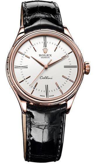 Model: 50505-WH - CASE = [Material:18kt Rose Gold], [Case Diameter:39], [Bezel:Fixed], [Case Back:Solid], [Water Resistant:50 Meters - 165 Feet], [Crystal:Scratch Resistant Sapphire], DIAL = [Color:White], MOVEMENT = [Type:Automatic Self Winding], [Crown:Screw Down], BAND = [Clasp:Tang], [Type:Black Alligator Leather (Also available on Brown Crocodile Leather)], (Usually ships in 2 to 4 business days.)