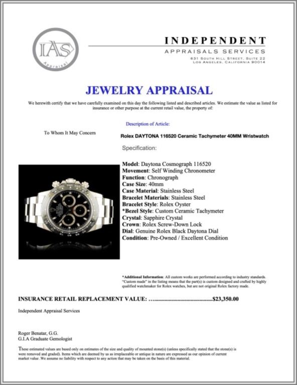 Regarding Appraised Jewelry and Loose Stones - Auctionfarm sends them out to a third party for Retail Replacement Value Appraisals, which are the most common. These types of evaluations are written for insurance needs. This would be the cost to replace the jewelry with an item of equal quality and kind, considered to be the current market price or the replacement value. This type of appraisal is done to protect you in the event of damage or loss of a valuable item. Our appraisals are conducted by independent 3rd Party appraisal firms that utilizes Certified GIA Gemologist. Appraisals should be used for verification of gemstone and/or metal weight, size, and grade only, not actual value. Appraisal value should be considered for insurance purposes only, not actual value, as price varies greatly from retail locations thru out the world. Items should not be purchased with the expectation to resell for appraisal price, or for profit.