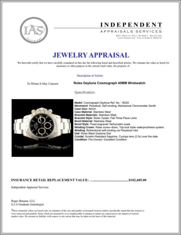Model: Cosmograph Daytona Ref. No.: 16520