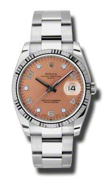 Model: 115324-PIDO - CASE = [Material:Stainless Steel], [Case Diameter:34], [Bezel:Fluted 18kt White Gold], [Water Resistant:100 Meters - 330 Feet], [Crystal:Sapphire], DIAL = [Color:Pink Diamond], MOVEMENT = [Type:Automatic Self Winding], BAND = [Type:Stainless Steel Oyster], (Usually ships in 1 to 2 weeks.)