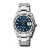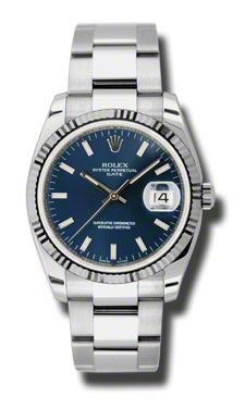 Model: 115234-BLSO - CASE = [Material:Stainless Steel], [Case Diameter:34], [Bezel:Fluted 18kt White Gold], [Water Resistant:100 Meters - 330 Feet], [Crystal:Sapphire], DIAL = [Color:Blue Index], MOVEMENT = [Type:Automatic Self Winding], BAND = [Type:Stainless Steel Oyster], (Usually ships in 1 to 2 weeks.)