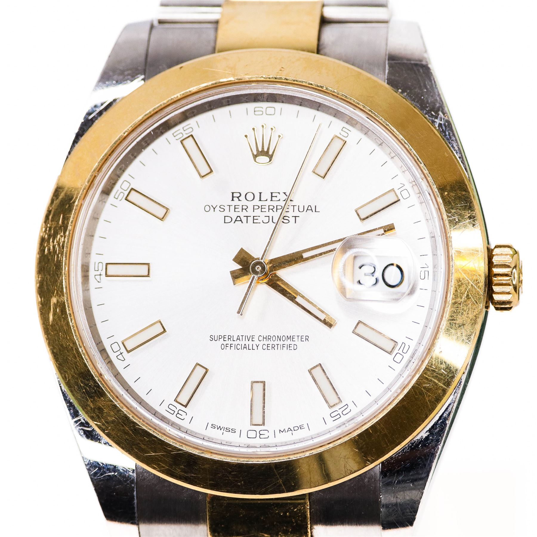 Rolex Date-Just 126334 with a 2 Tone 18k and stainless steel oyster bracelet and a 41mm case size. This watch does not come with original COA.