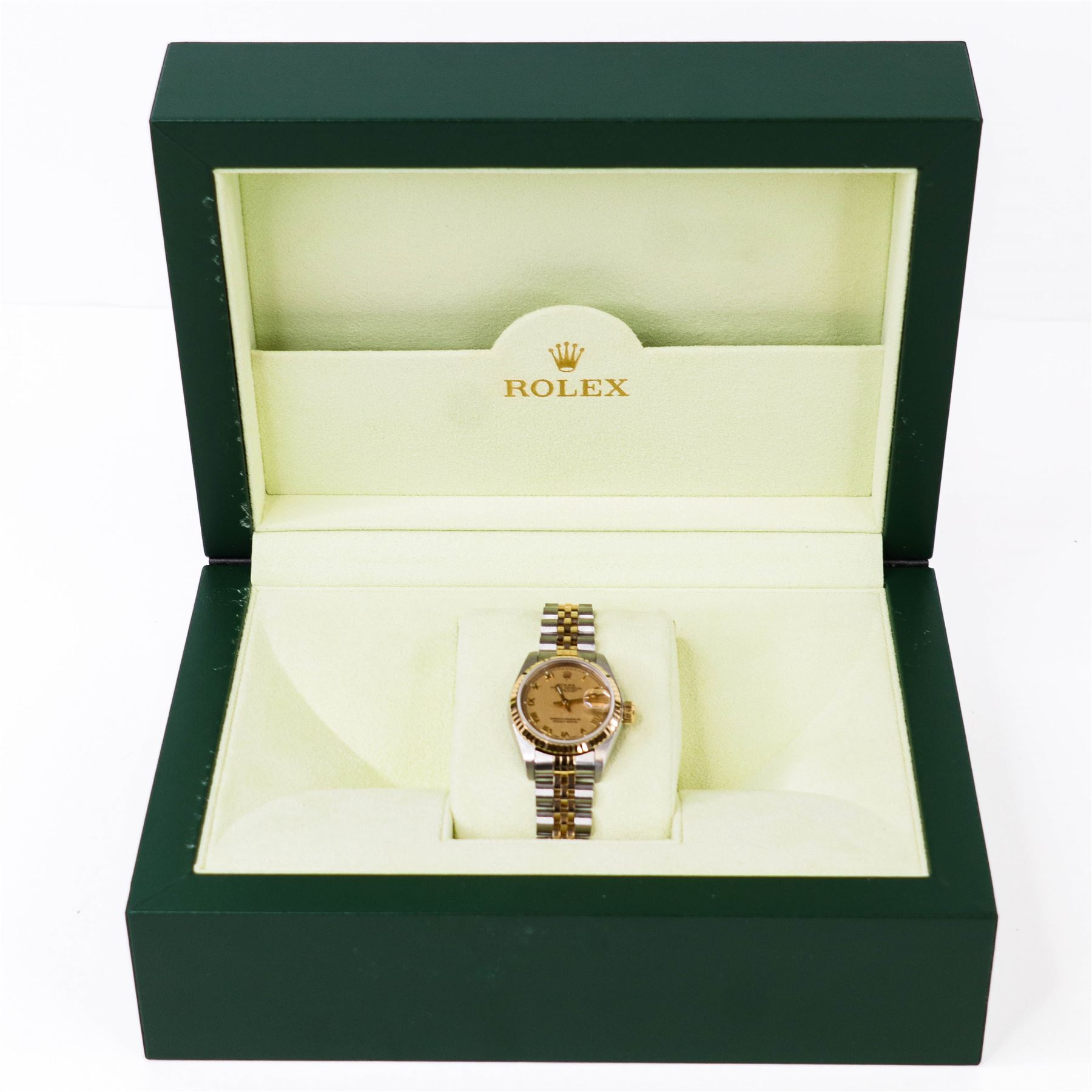 Rolex Date-Just Ref. 69173 ladies sized 28mm case 2 tone 18k and stainless steel watch. This watch does not have original COA card.& nbsp;