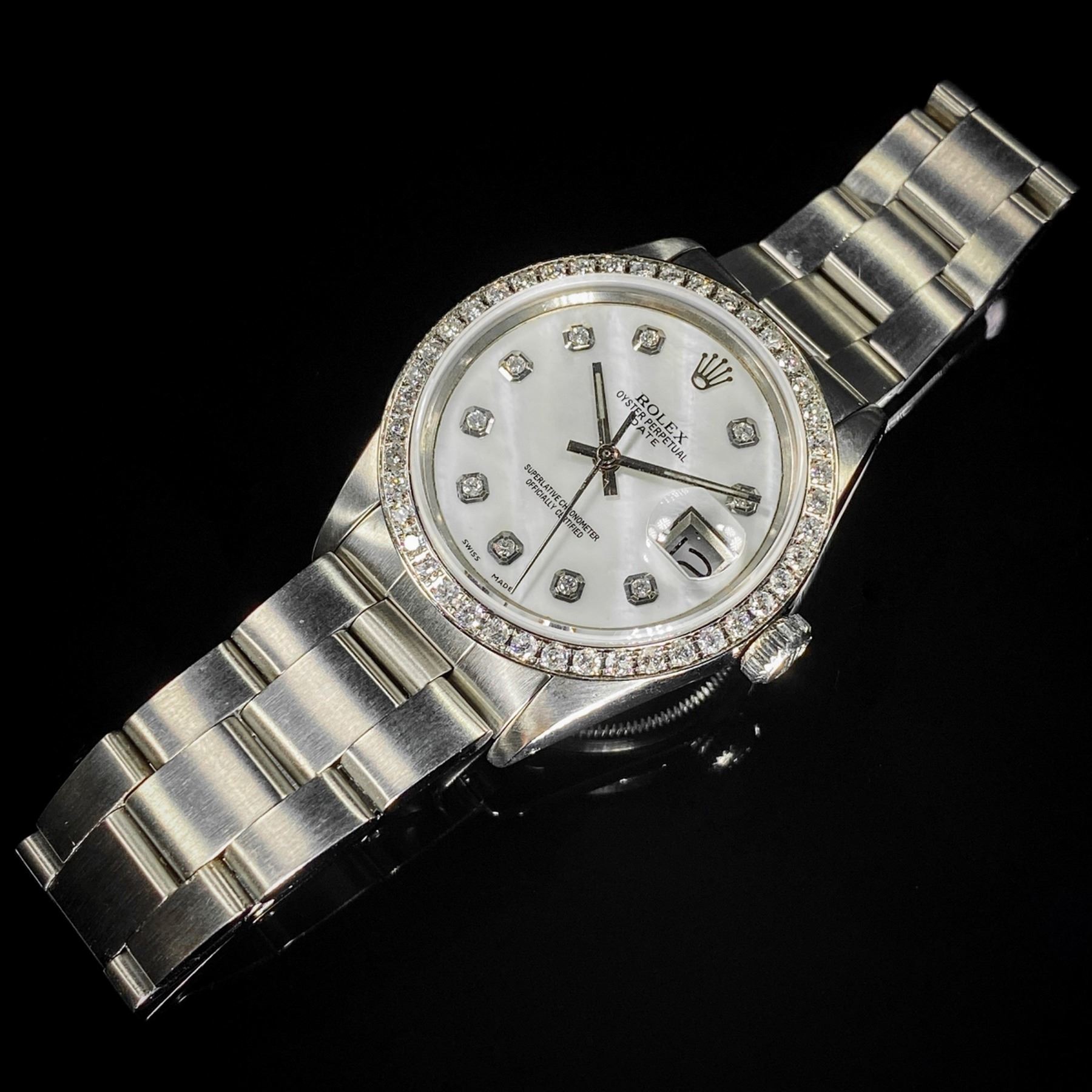 Rolex Date SS Mother of Pearl Dial W/ Dia & Dia B