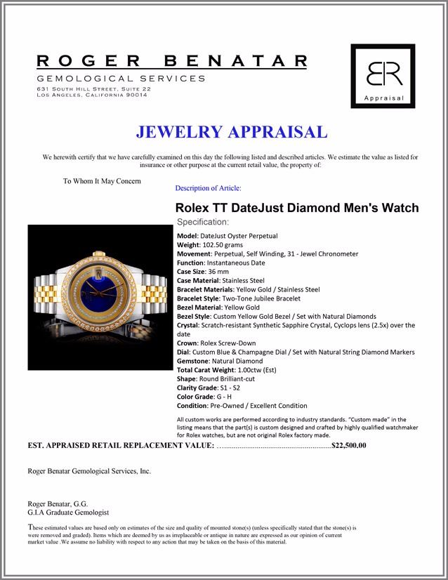 Dial: Custom Blue & Champagne Dial / Set with Natural String Diamond Markers