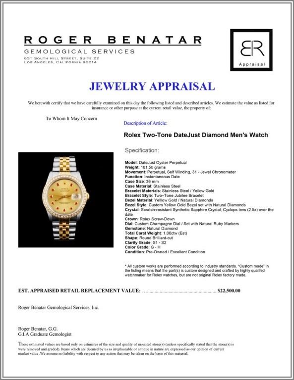 Rolex DateJust 1.00ct Diamond Men's Watch