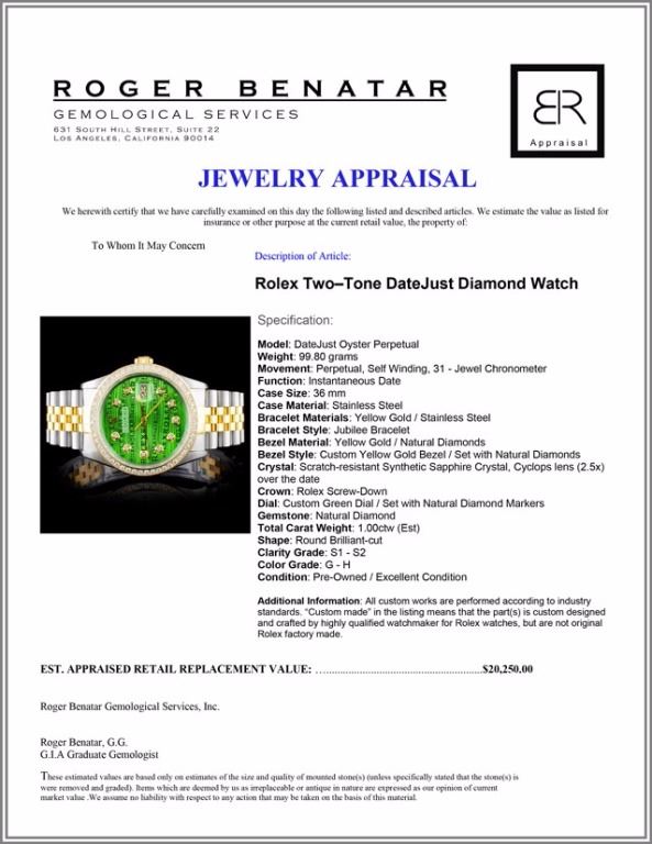 Dial: Custom Green Dial / Set with Natural Diamond Markers