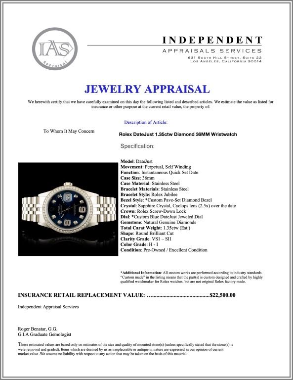 Regarding Appraised Jewelry and Loose Stones - Auctionfarm sends them out to a third party for Retail Replacement Value Appraisals, which are the most common. These types of evaluations are written for insurance needs. This would be the cost to replace the jewelry with an item of equal quality and kind, considered to be the current market price or the replacement value. This type of appraisal is done to protect you in the event of damage or loss of a valuable item. Our appraisals are conducted by independent 3rd Party appraisal firms that utilizes Certified GIA Gemologist. Appraisals should be used for verification of gemstone and/or metal weight, size, and grade only, not actual value. Appraisal value should be considered for insurance purposes only, not actual value, as price varies greatly from retail locations thru out the world. Items should not be purchased with the expectation to resell for appraisal price, or for profit.