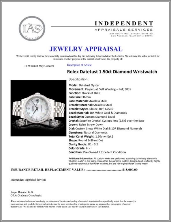 Dial: Custom Snow White Dial & 10R Diamond Numerals