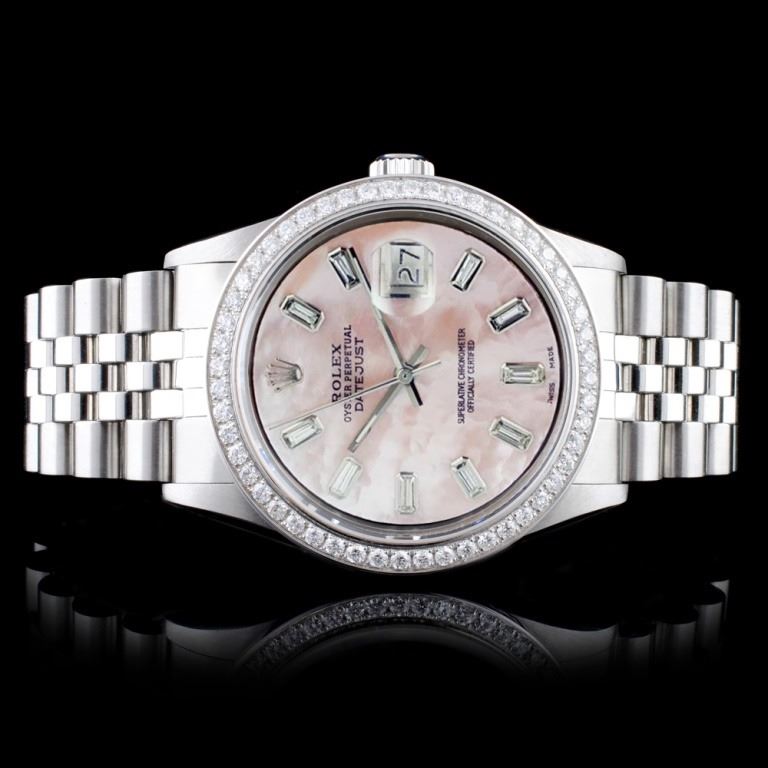 Dial: Custom Pink MOP Dial & 10 Baguette Diamond Numerals