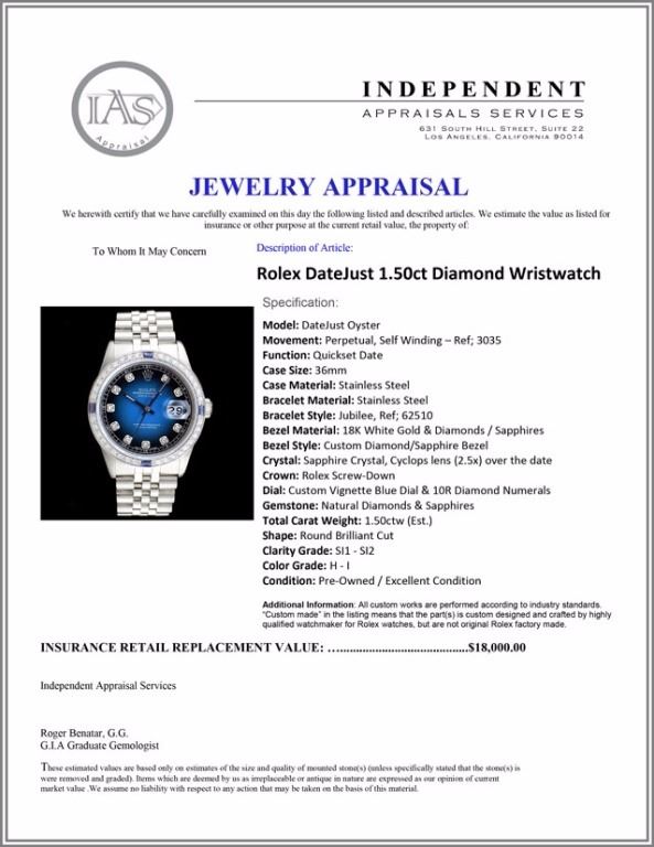Dial: Custom Vignette Blue Dial & 10R Diamond Numerals