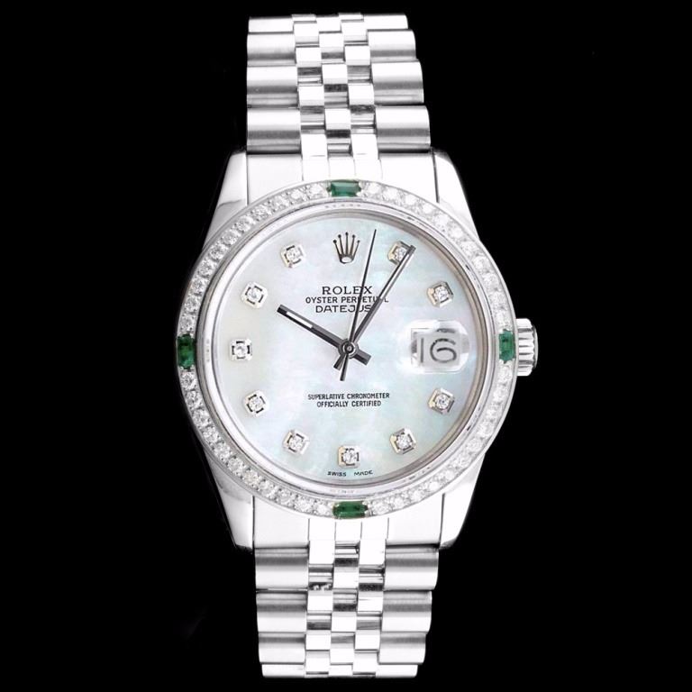 Dial: Custom White MOP Dial & 10R Diamond Numerals