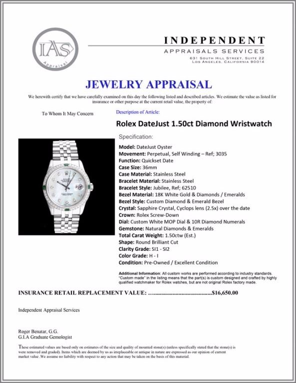 Rolex DateJust 1.50ct Diamond Wristwatch