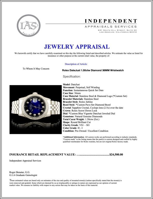 Dial: *Custom Blue Vignette DateJust Jeweled Dial