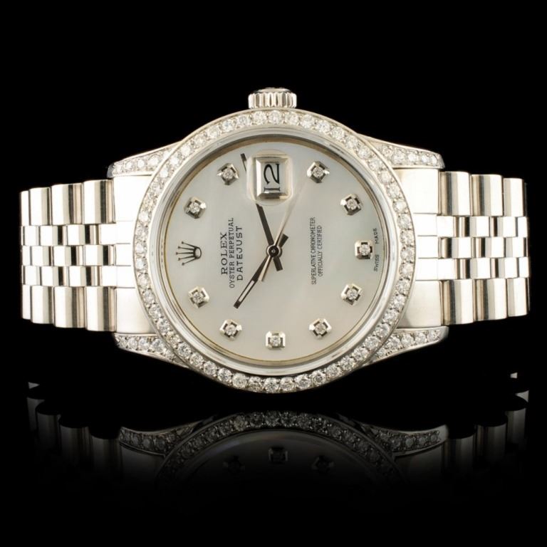 Dial: *Custom White MOP DateJust Jeweled Dial