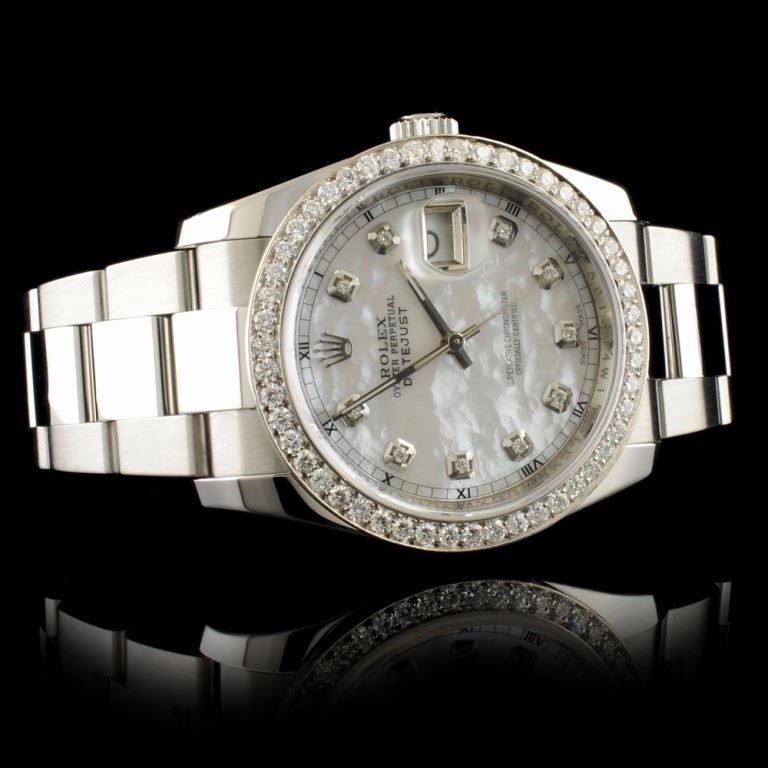 Dial: *Custom White MOP DateJust Jeweled Dial