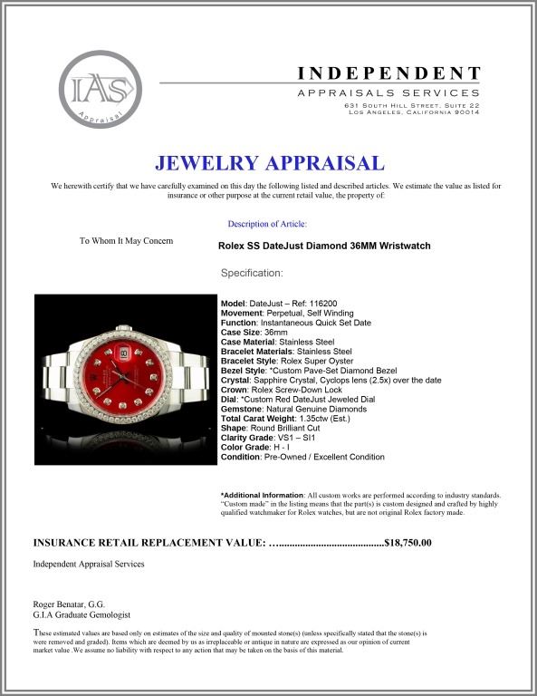 Regarding Appraised Jewelry and Loose Stones - Auctionfarm sends them out to a third party for Retail Replacement Value Appraisals, which are the most common. These types of evaluations are written for insurance needs. This would be the cost to replace the jewelry with an item of equal quality and kind, considered to be the current market price or the replacement value. This type of appraisal is done to protect you in the event of damage or loss of a valuable item. Our appraisals are conducted by independent 3rd Party appraisal firms that utilizes Certified GIA Gemologist. Appraisals should be used for verification of gemstone and/or metal weight, size, and grade only, not actual value. Appraisal value should be considered for insurance purposes only, not actual value, as price varies greatly from retail locations thru out the world. Items should not be purchased with the expectation to resell for appraisal price, or for profit.