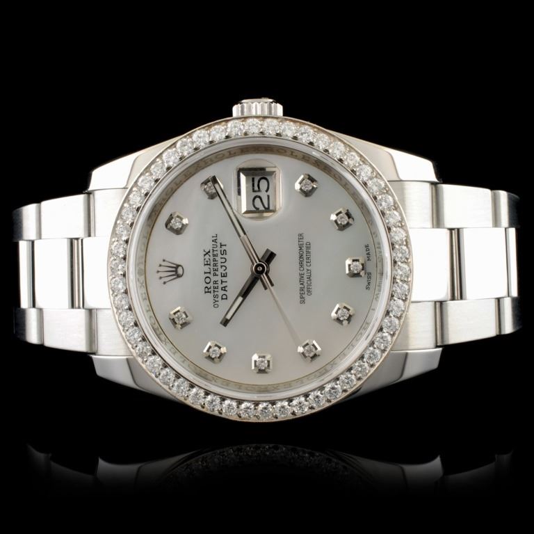 Dial: *Custom White MOP DateJust Jeweled Dial
