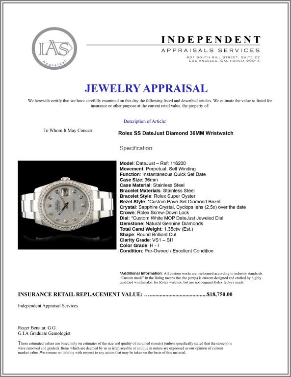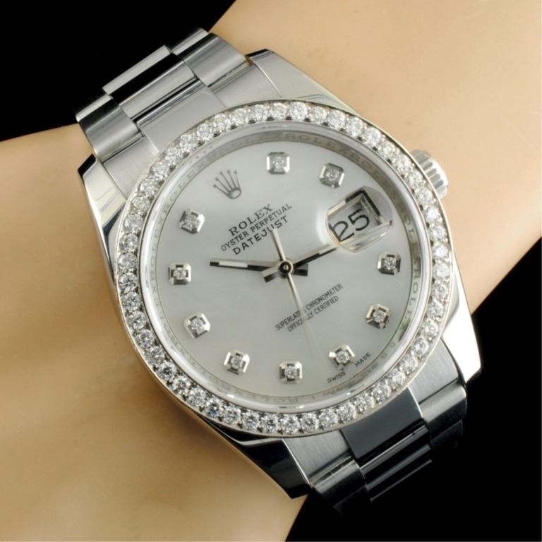 Dial: *Custom White MOP DateJust Jeweled Dial