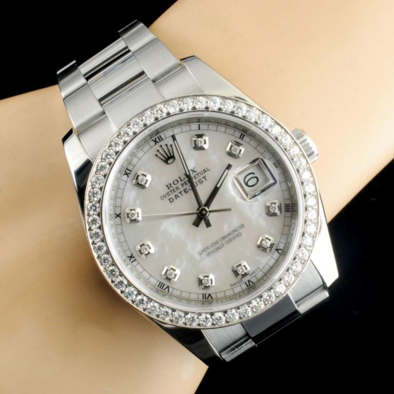 Dial: *Custom White MOP DateJust Jeweled Dial