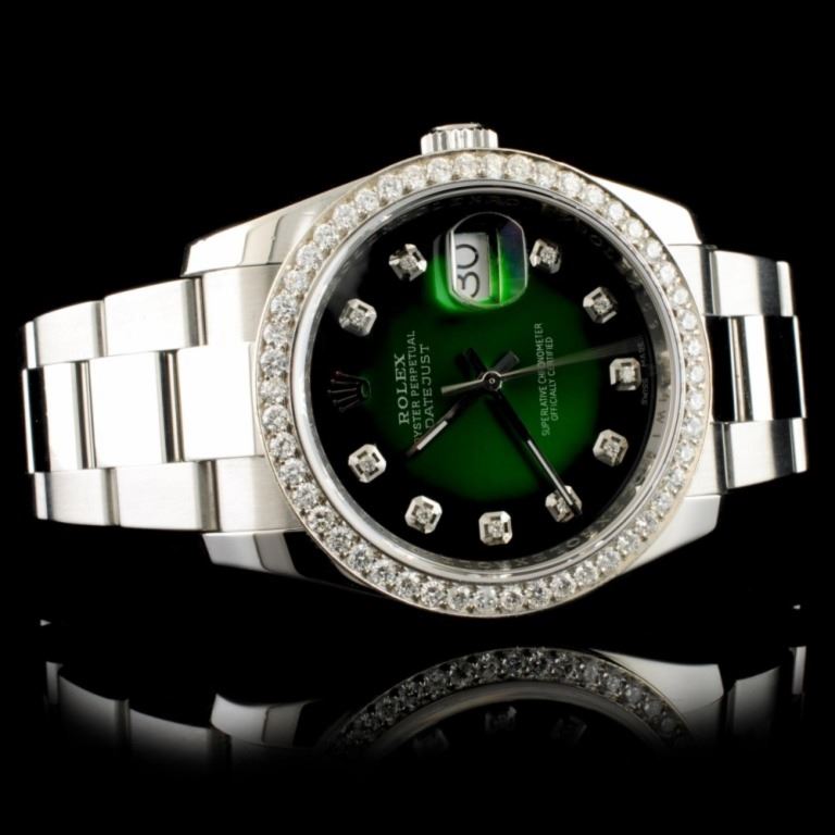 Dial: *Custom Green Vignette DateJust Jeweled Dial