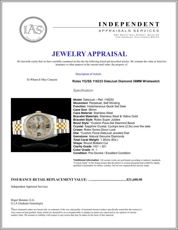 Regarding Appraised Jewelry and Loose Stones - Auctionfarm sends them out to a third party for Retail Replacement Value Appraisals, which are the most common. These types of evaluations are written for insurance needs. This would be the cost to replace the jewelry with an item of equal quality and kind, considered to be the current market price or the replacement value. This type of appraisal is done to protect you in the event of damage or loss of a valuable item. Our appraisals are conducted by independent 3rd Party appraisal firms that utilizes Certified GIA Gemologist. Appraisals should be used for verification of gemstone and/or metal weight, size, and grade only, not actual value. Appraisal value should be considered for insurance purposes only, not actual value, as price varies greatly from retail locations thru out the world. Items should not be purchased with the expectation to resell for appraisal price, or for profit.