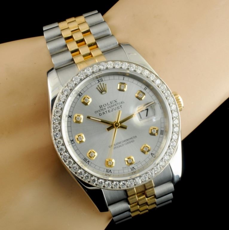 Dial: *Custom Silver DateJust Jeweled Dial