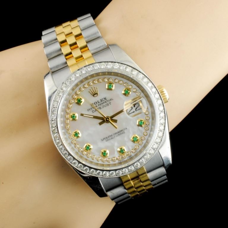 Dial: *Custom White MOP DateJust Jeweled Dial