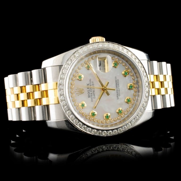 Dial: *Custom White MOP DateJust Jeweled Dial
