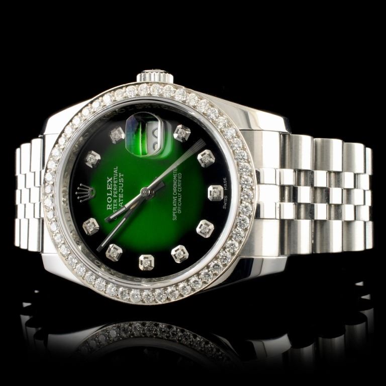 Dial: *Custom Green Vignette DateJust Jeweled Dial