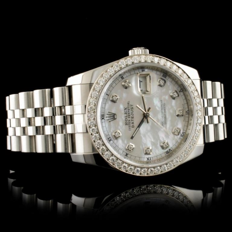Dial: *Custom White MOP DateJust Jeweled Dial