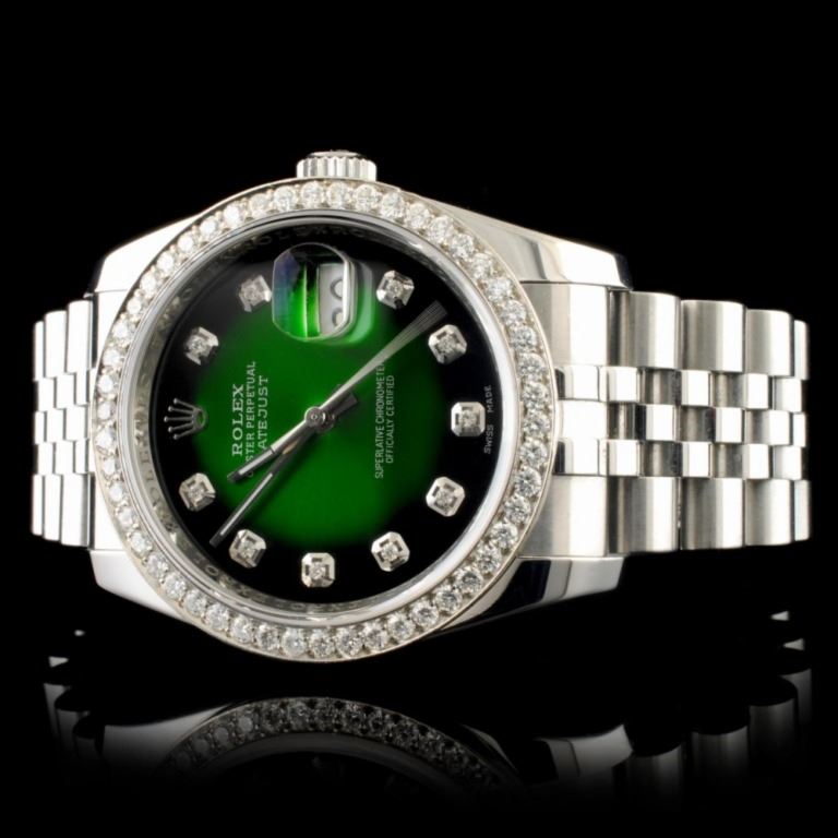 Dial: *Custom Green Vignette DateJust Jeweled Dial