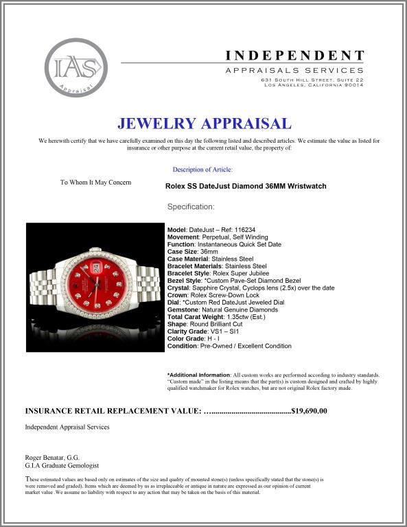 Regarding Appraised Jewelry and Loose Stones - Auctionfarm sends them out to a third party for Retail Replacement Value Appraisals, which are the most common. These types of evaluations are written for insurance needs. This would be the cost to replace the jewelry with an item of equal quality and kind, considered to be the current market price or the replacement value. This type of appraisal is done to protect you in the event of damage or loss of a valuable item. Our appraisals are conducted by independent 3rd Party appraisal firms that utilizes Certified GIA Gemologist. Appraisals should be used for verification of gemstone and/or metal weight, size, and grade only, not actual value. Appraisal value should be considered for insurance purposes only, not actual value, as price varies greatly from retail locations thru out the world. Items should not be purchased with the expectation to resell for appraisal price, or for profit.