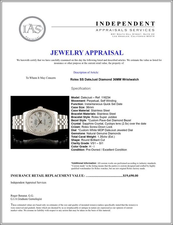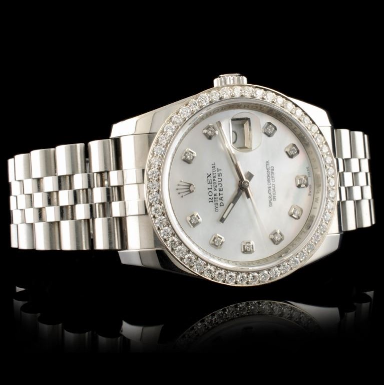 Dial: *Custom White MOP DateJust Jeweled Dial