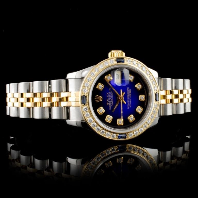 Dial: Rolex dial Custom refinish Blue Vignette, w/ 10R Diamond Numerals