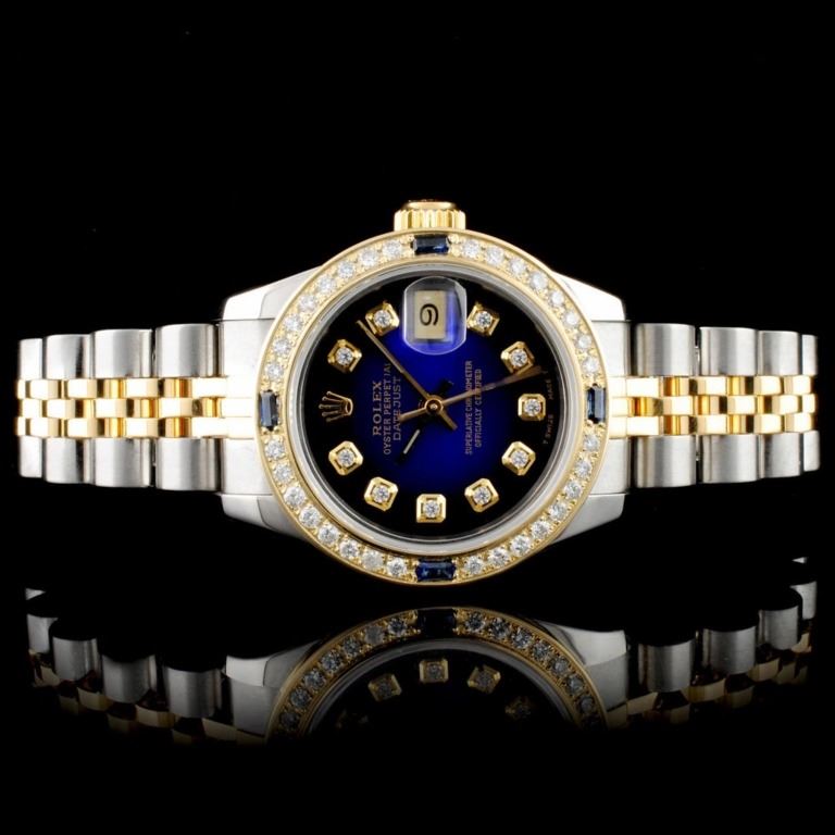Dial: Rolex dial Custom refinish Blue Vignette, w/ 10R Diamond Numerals