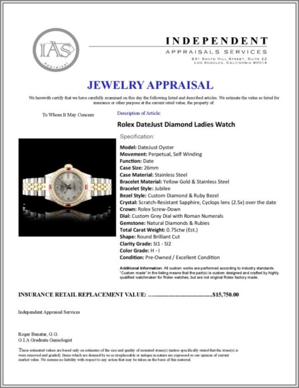 Regarding Appraised Jewelry and Loose Stones - Auctionfarm sends them out to a third party for Retail Replacement Value Appraisals, which are the most common. These types of evaluations are written for insurance needs. This would be the cost to replace the jewelry with an item of equal quality and kind, considered to be the current market price or the replacement value. This type of appraisal is done to protect you in the event of damage or loss of a valuable item. Our appraisals are conducted by independent 3rd Party appraisal firms that utilizes Certified GIA Gemologist. Appraisals should be used for verification of gemstone and/or metal weight, size, and grade only, not actual value. Appraisal value should be considered for insurance purposes only, not actual value, as price varies greatly from retail locations thru out the world. Items should not be purchased with the expectation to resell for appraisal price, or for profit.