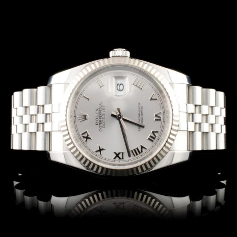 Dial: Rolex Signature Rhodium Dial with Silver Roman Numerals