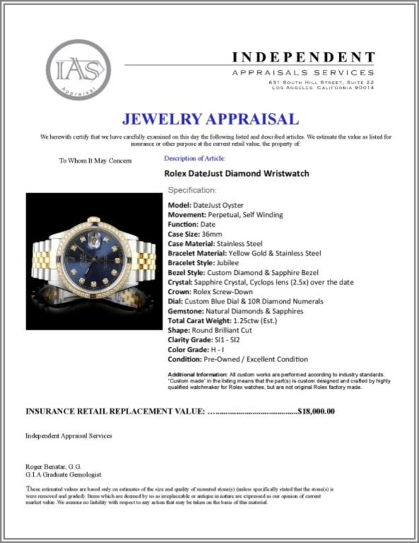 Regarding Appraised Jewelry and Loose Stones - Auctionfarm sends them out to a third party for Retail Replacement Value Appraisals, which are the most common. These types of evaluations are written for insurance needs. This would be the cost to replace the jewelry with an item of equal quality and kind, considered to be the current market price or the replacement value. This type of appraisal is done to protect you in the event of damage or loss of a valuable item. Our appraisals are conducted by independent 3rd Party appraisal firms that utilizes Certified GIA Gemologist. Appraisals should be used for verification of gemstone and/or metal weight, size, and grade only, not actual value. Appraisal value should be considered for insurance purposes only, not actual value, as price varies greatly from retail locations thru out the world. Items should not be purchased with the expectation to resell for appraisal price, or for profit.