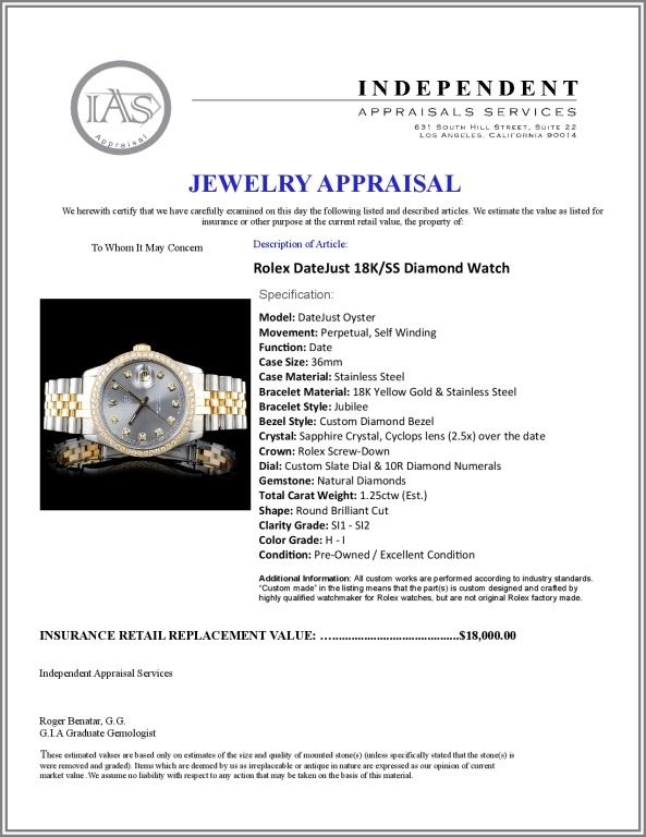 Dial: Custom Slate Dial & 10R Diamond Numerals