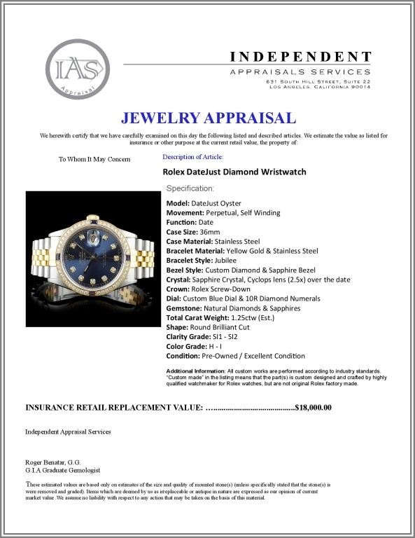 Dial: Custom Blue Dial & 10R Diamond Numerals