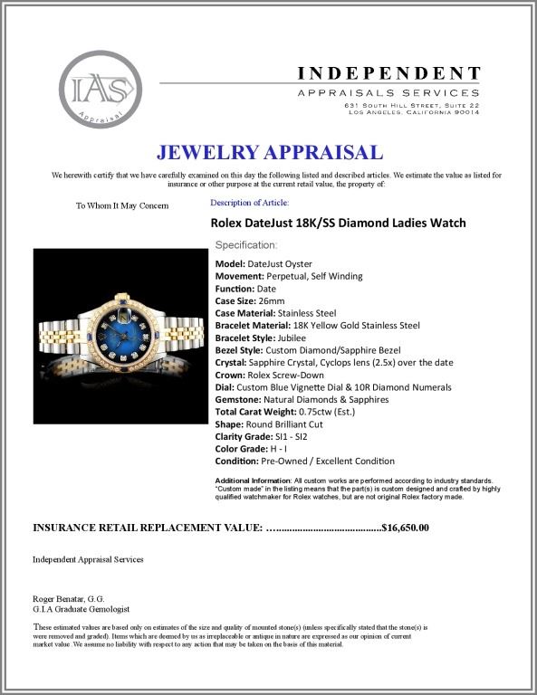 Dial: Custom Blue Vignette Dial & 10R Diamond Numerals