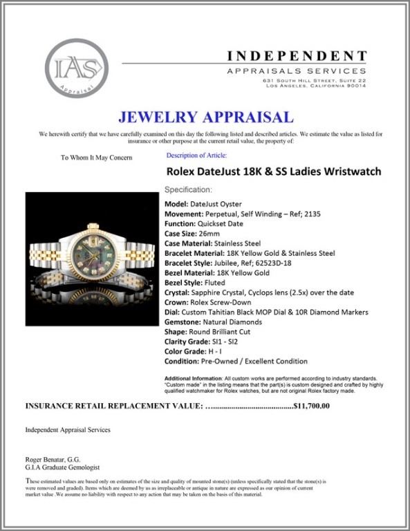 Dial: Custom Tahitian Black MOP Dial & 10R Diamond Markers