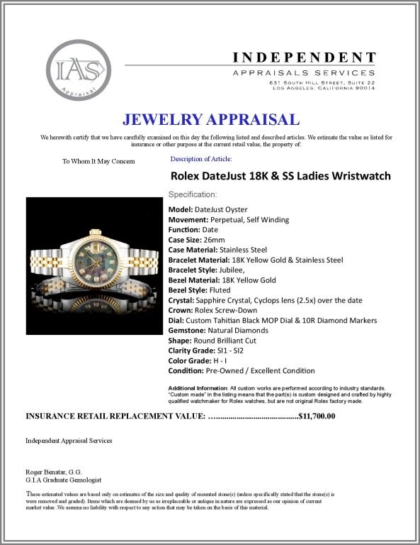 Dial: Custom Tahitian Black MOP Dial & 10R Diamond Markers