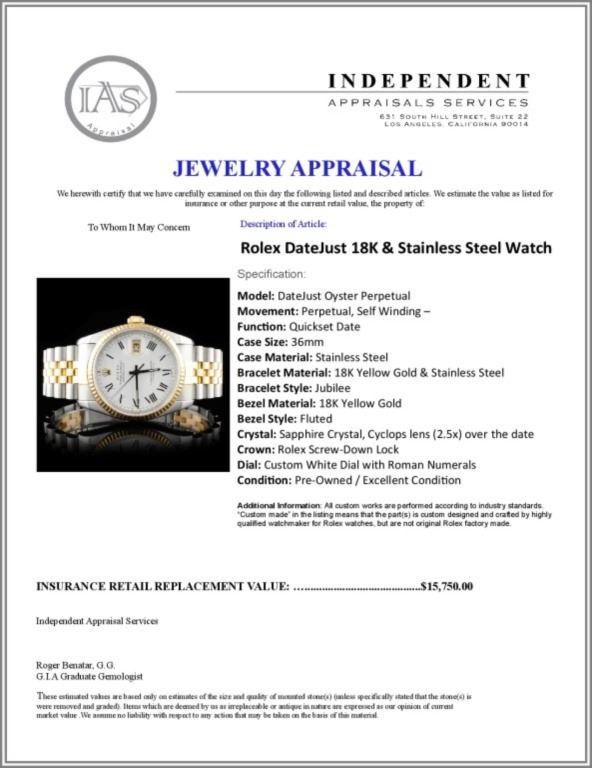 Regarding Appraised Jewelry and Loose Stones - Auctionfarm sends them out to a third party for Retail Replacement Value Appraisals, which are the most common. These types of evaluations are written for insurance needs. This would be the cost to replace the jewelry with an item of equal quality and kind, considered to be the current market price or the replacement value. This type of appraisal is done to protect you in the event of damage or loss of a valuable item. Our appraisals are conducted by independent 3rd Party appraisal firms that utilizes Certified GIA Gemologist. Appraisals should be used for verification of gemstone and/or metal weight, size, and grade only, not actual value. Appraisal value should be considered for insurance purposes only, not actual value, as price varies greatly from retail locations thru out the world. Items should not be purchased with the expectation to resell for appraisal price, or for profit.
